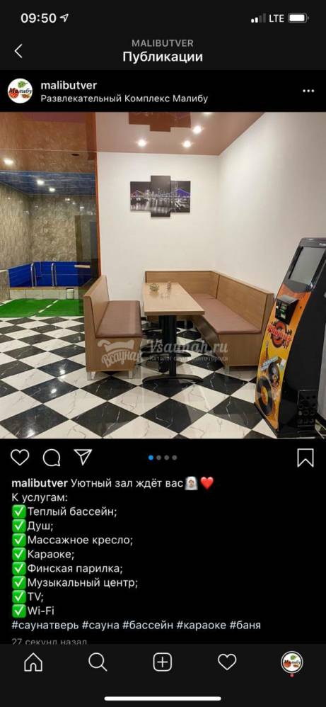 Были недавно в сауне Малибу, очень понравилось, тёплый, чистый бассейн, хорошее отношение к посетителям, разрешили жарить шашлык на улице. Отдохнули от души. Рекомендуем. Всегда делают скидку.